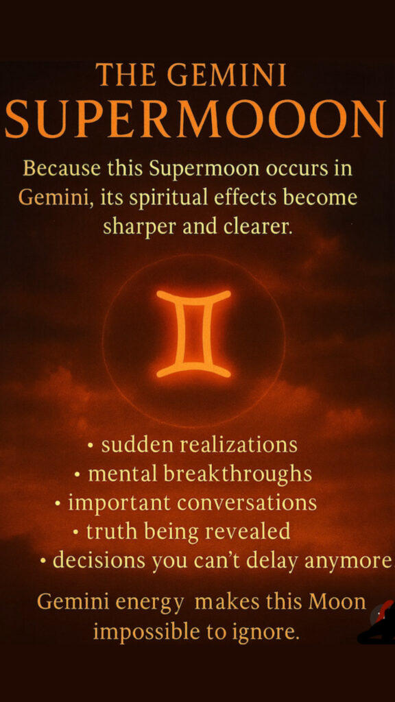 This final Supermoon takes place in the sign of Gemini and according to astrologers, it will bring a lively, expressive and mentally active vibration. Gemini energy is fast-thinking, curious, clever and communicative. It loves connection, conversation, learning and sharing though it can also scatter our focus or pull us in too many directions at once.